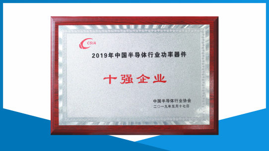 公司榮獲2019年中國半導體功率器件十強企業(yè) -